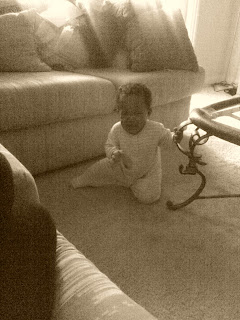 Nothing too much happened out the usual today. Zakiah was as active as usual and I was trying as hard as I can to have enough energy to deal with all her silliness. I forgot to mention yesterday how Zakiah got from a sitting position to a standing position all on her own for the first time. No pulling up, no additional assistance. Right before our eyes, she just got up and stood for a few seconds. We were amazed! One of the coolest things about that moment was that Josh got to experience seeing one of Zakiah's first with his very own eyes. No hearing about this secondhand from me. The amazement in his eyes was priceless! I am so glad he was there to experience this moment with me.